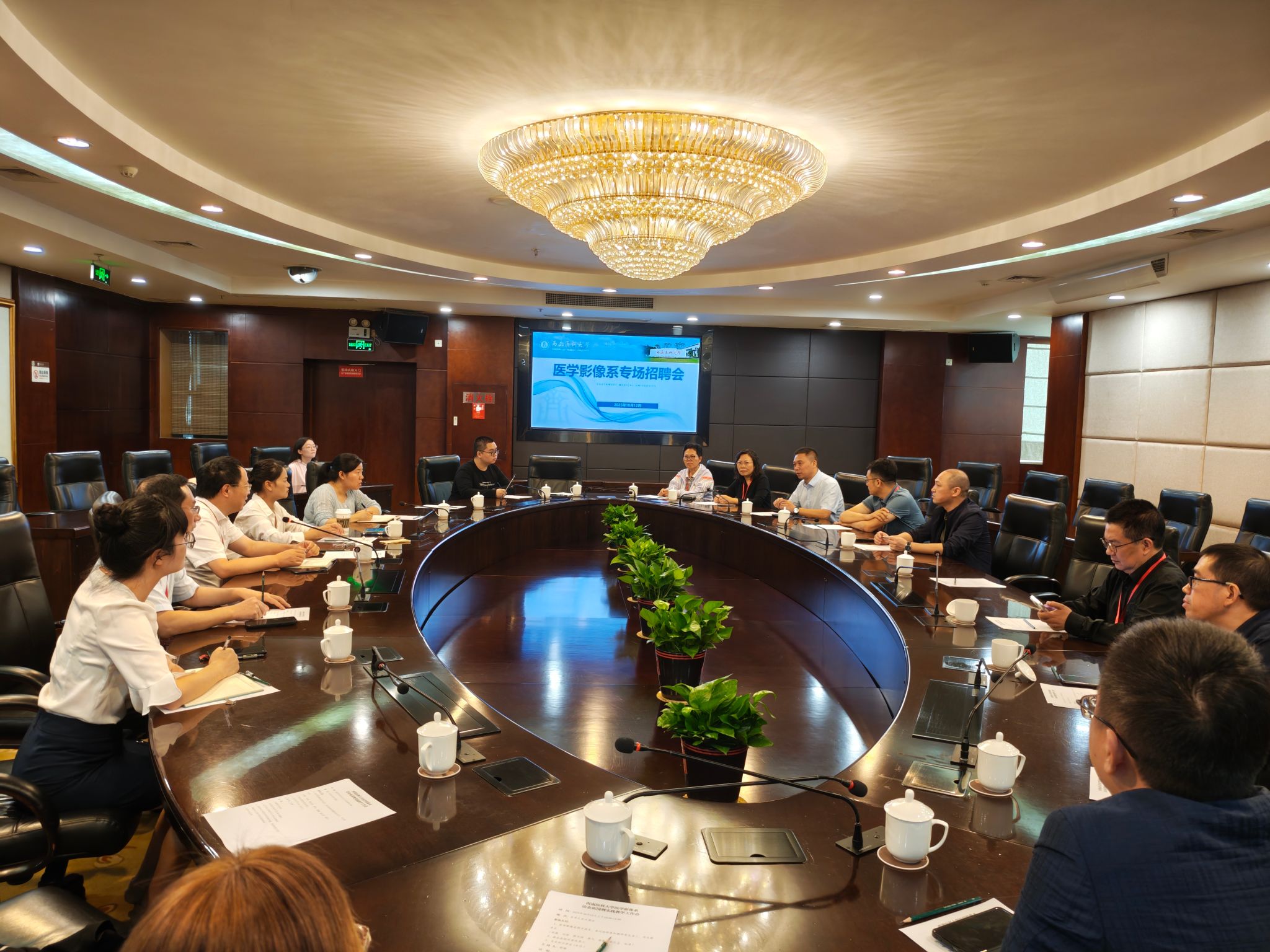 为搭建优质人才供需对接平台,拓宽学生就业渠道,促进毕业生高质量就业,10月12日,医学影像系前往自贡举办了专场招聘会,自贡市第一人民医院、内江市第一人民医院、内江市第二人民医院、宜宾市第一人民医院、达州市中心医院、绵阳市人民医院等十家医院受邀参会,2026届医学影像学、医学影像技术毕业生参加了本次招聘会。