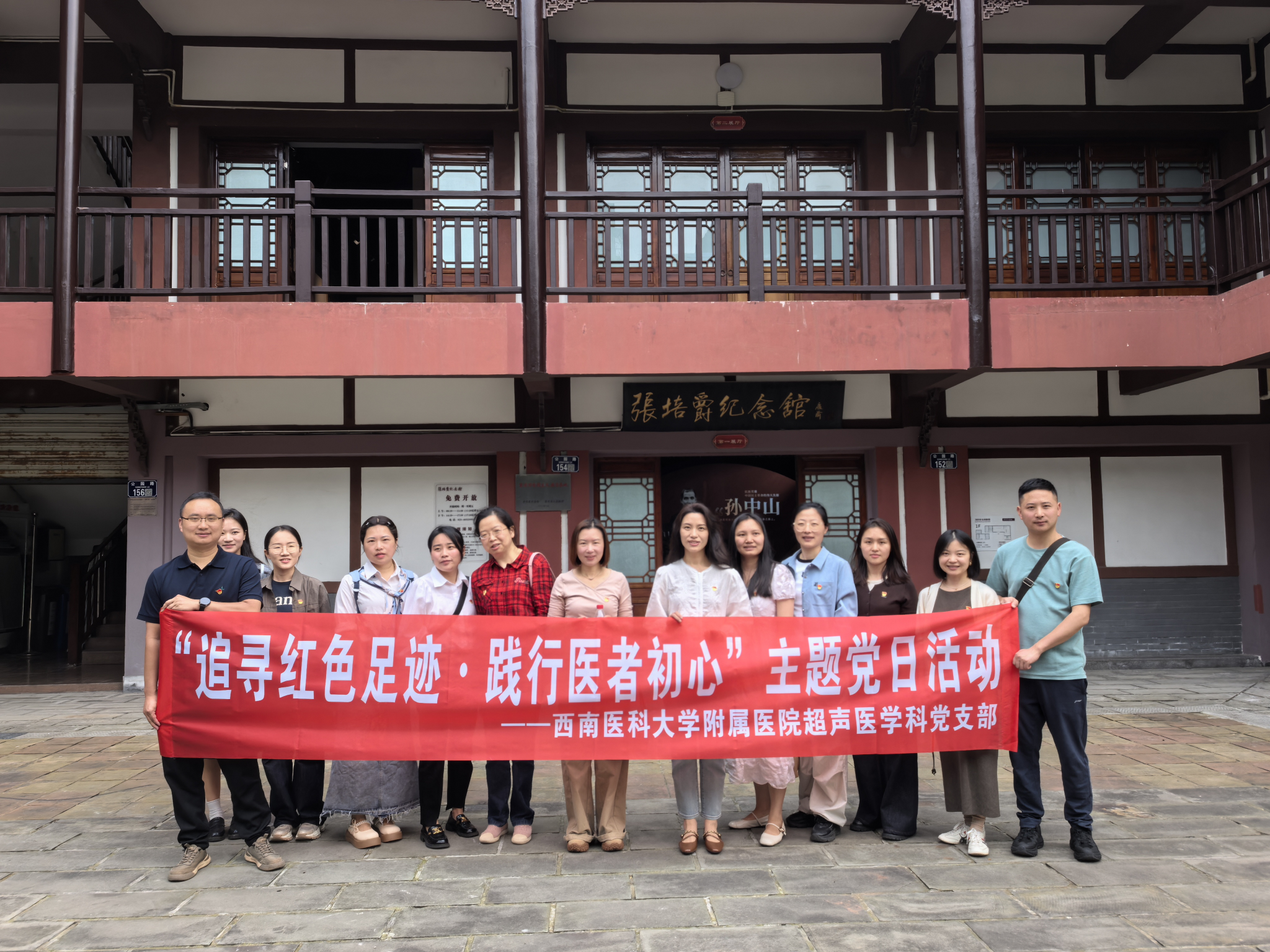 为传承红色革命精神,筑牢党员初心使命,凝聚奋进医者力量,4月19日,西南医科大学附属医院超声医学科党支部在支部书记夏纪筑同志带领下,支部党员赴荣昌张培爵纪念馆,开展“追寻红色足迹・践行医者初心”红色教育主题党日活动,缅怀革命先烈峥嵘岁月,赓续百年红色精神血脉。